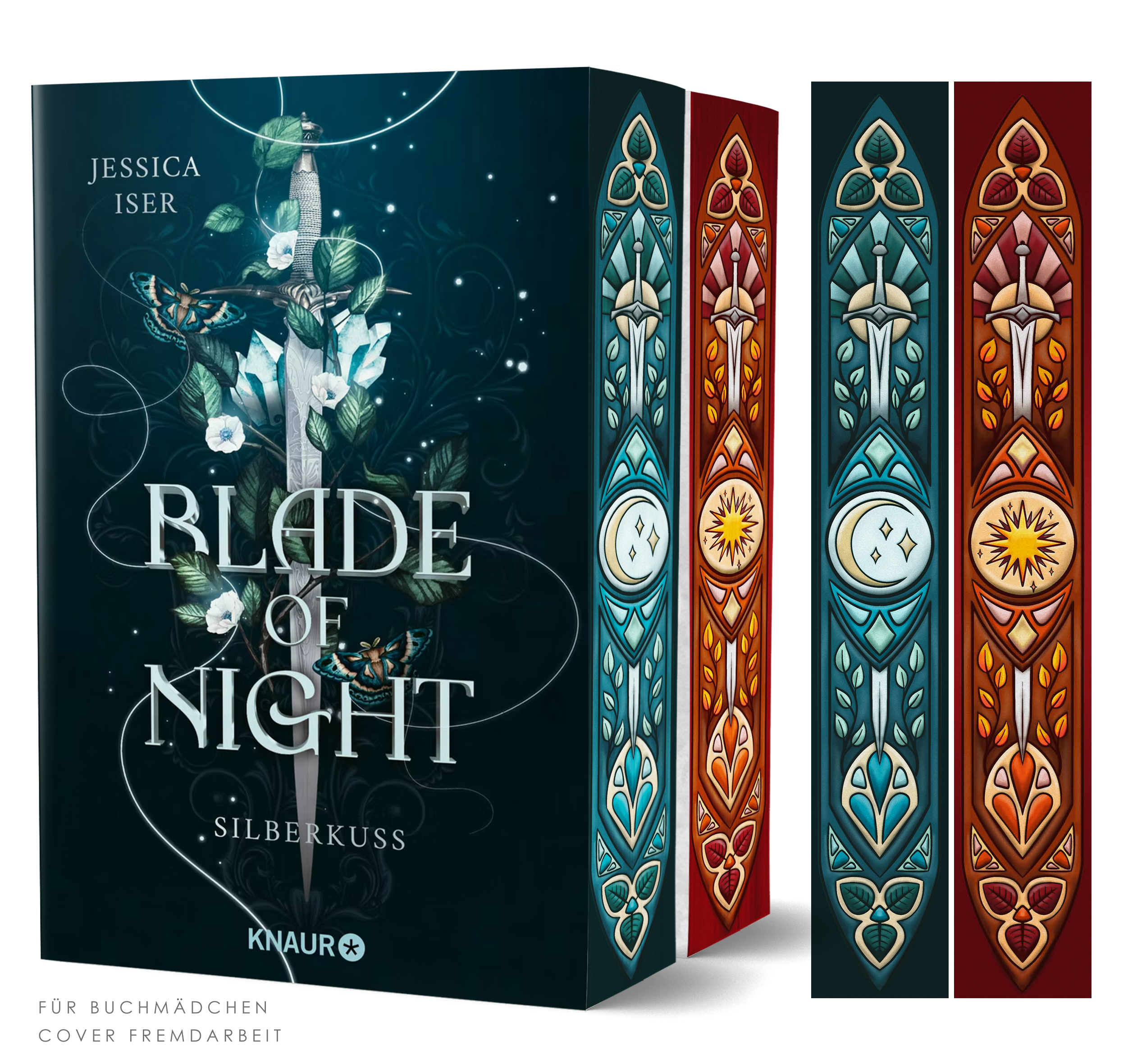 Ob einzeln oder mit fortlaufendem Motiv: Jeder Farbschnitt entsteht passend zu Cover, Geschichte und Welt.